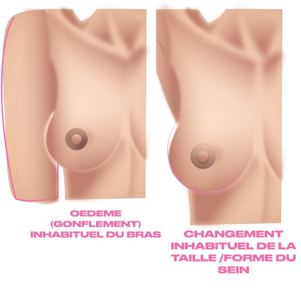 En plus des signes mentionnés ci-dessus, soyez attentif à d'autres symptômes moins courants tels que des changements dans la sensation de la peau du sein, des creux rétractés, des douleurs persistantes ou une sensation de chaleur. Si vous remarquez quelque chose d'inhabituel, n'hésitez pas à consulter votre chirurgien sénologue pour une évaluation complète.