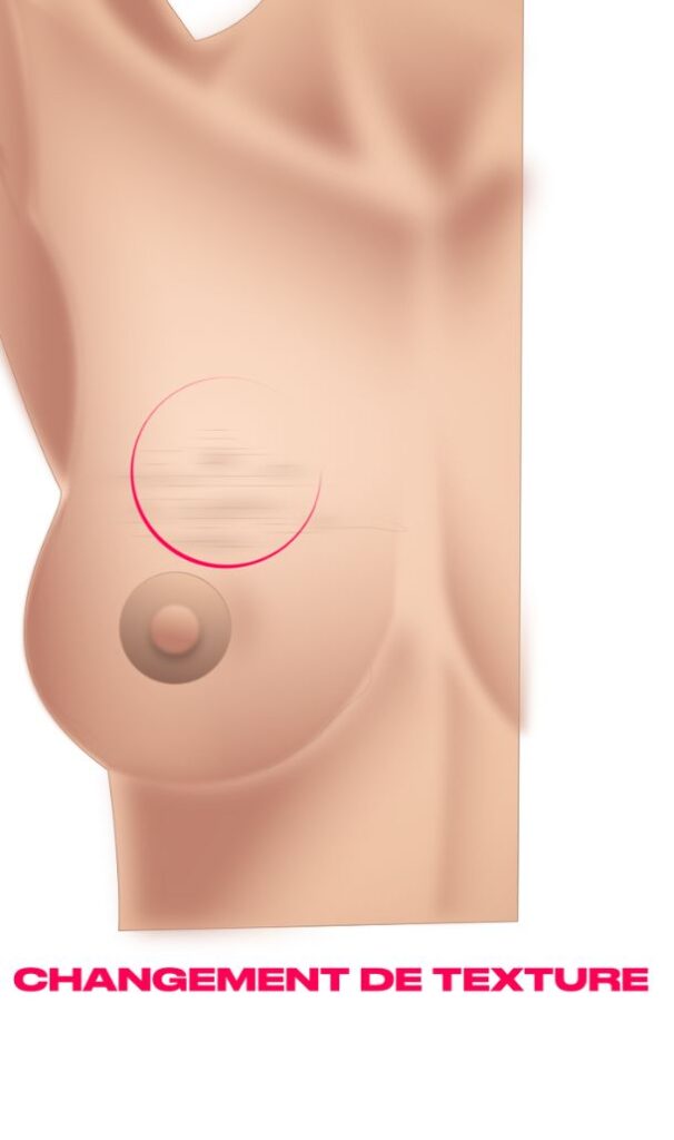 Il faut s’alarmer et consulter un chirurgien sénologue en cas de : déformation du sein ou du mamelon, palpation d’une boule au niveau du sein ou de l’aisselle, changement de texture dans un quadrant du sein comme un aspect de peau d’orange, apparition d’une rougeur dans le sein, ou encore un écoulement mamelonnaire persistant.Ces signes incitent à consulter un chirurgien expert en sénologie et à realiser un bilan radiologique mammaire ( mammographie et  échographie des seins).